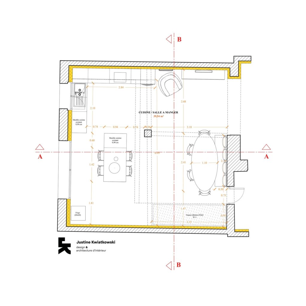 Relooking et optimisation des espaces cuisine et salle à manger.