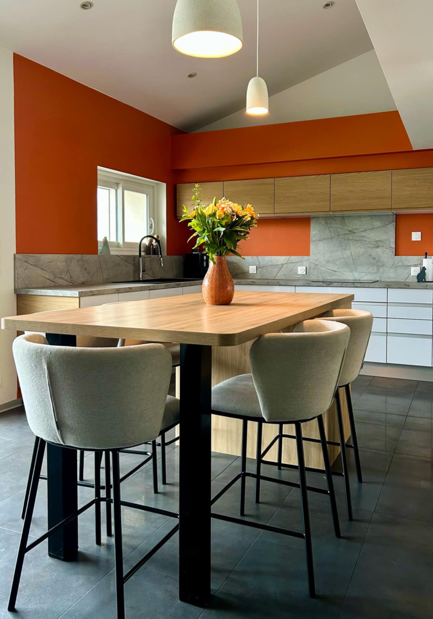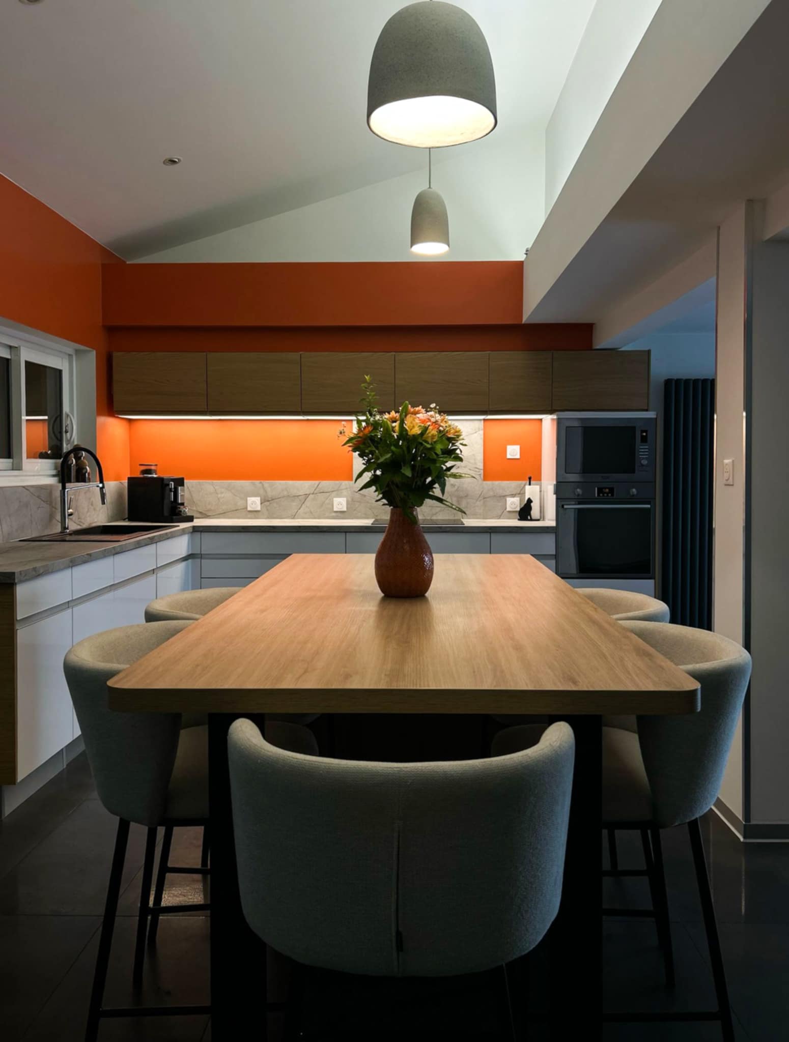 Créer une ambiance chaleureuse et pleine de vitalité, en sublimant l’existant. Objectif : transformer la cuisine en un lieu à la fois esthétique et fonctionnel, tout en conservant les meubles actuels.